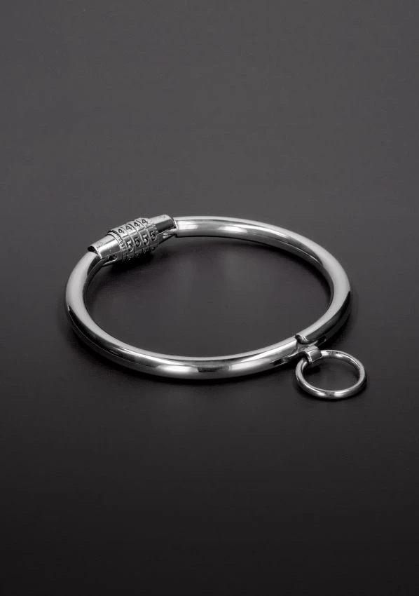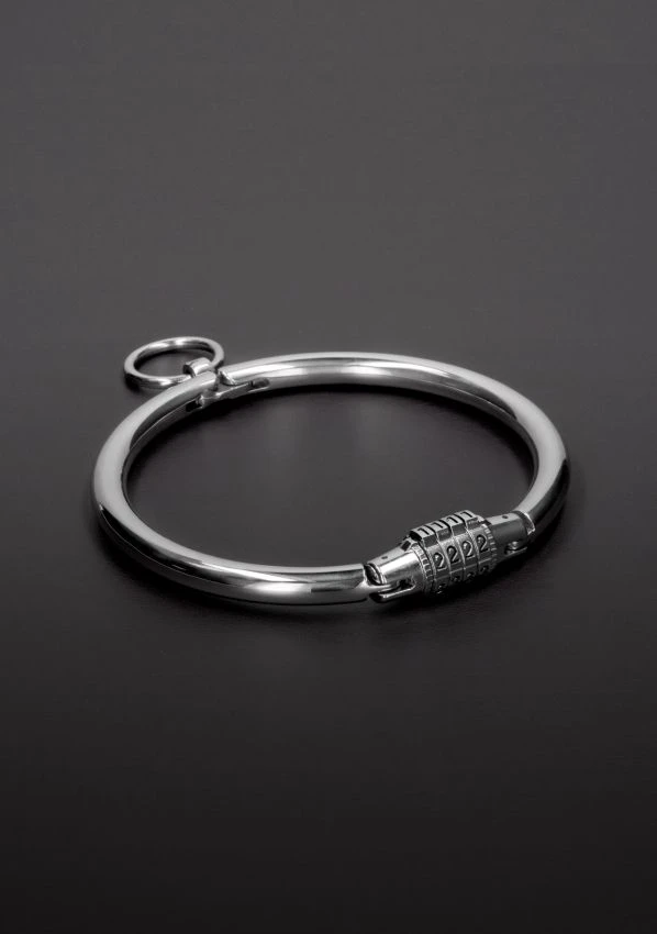 Ce choker est un excellent partenaire de jeux pour condraindre ou soumettre. Un « safe word » sera nécessaire, ainsi qu’un code à 4 chiffres. Ce choker plaira aux plus audacieux avec sa matière en acier chirurgical, matière froide au premier abord, et se réchauffe vite au contact de la peau. Son poids, assez conséquent, offre une sensation d’étreinte autour du cou. Ce choker est non réglable, il a un diamètre intérieur de 10,7cm pour enserrer le cou. Ce modèle s’ouvre uniquement avec un code secret, attention à ne pas l’oublier !