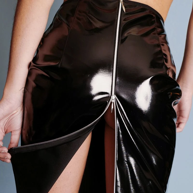 Une longue fermeture éclair habille la jupe.