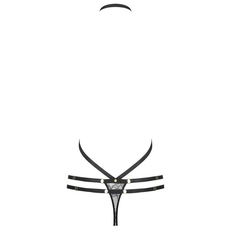Créant une illusion de laçage sensuel sur le haut du corps et offrant différentes combinaisons créatives possibles, le harnais Jeux Magnétiques entièrement ajustable se porte au naturel ou s’agrémente de cache-tétons.
