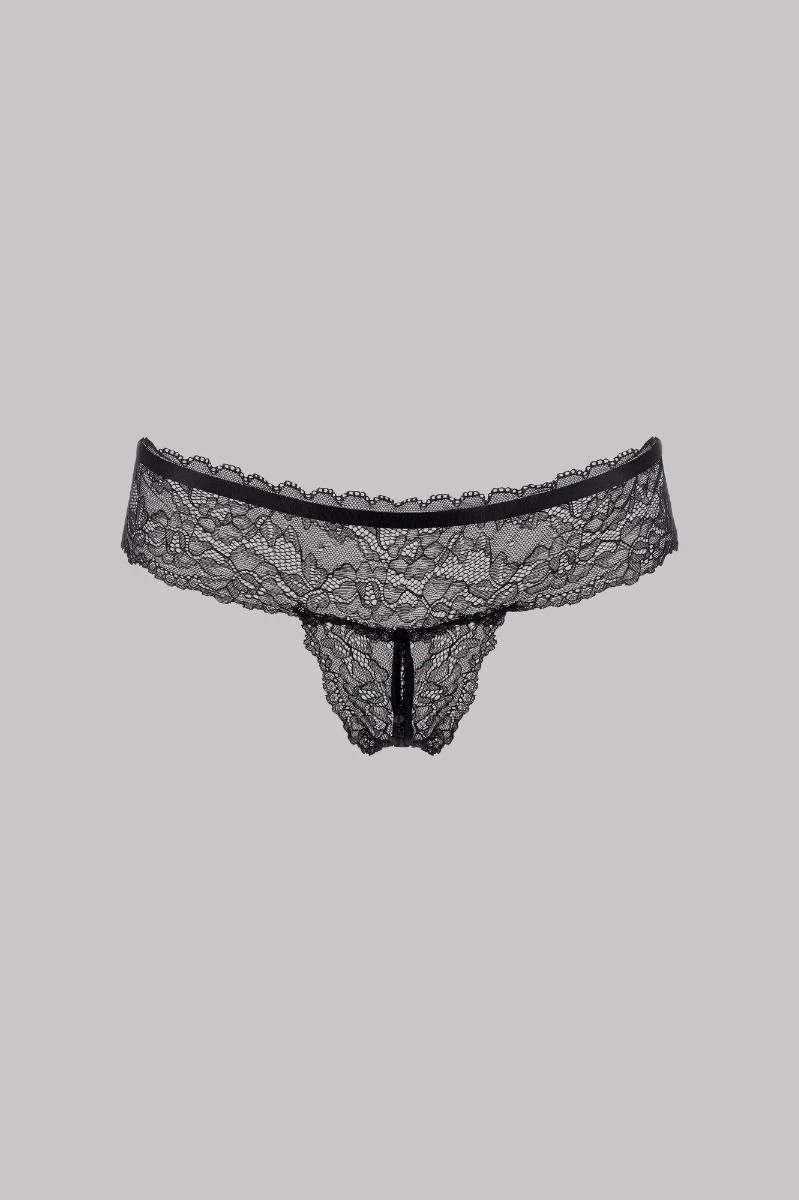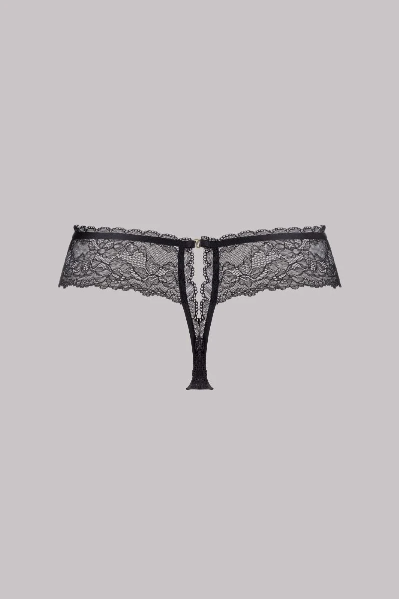 Couvrant votre intimité de dentelle, ce string tanga Le Petit Secret raffiné ose l’ouverture impertinente sur l’arrière.
