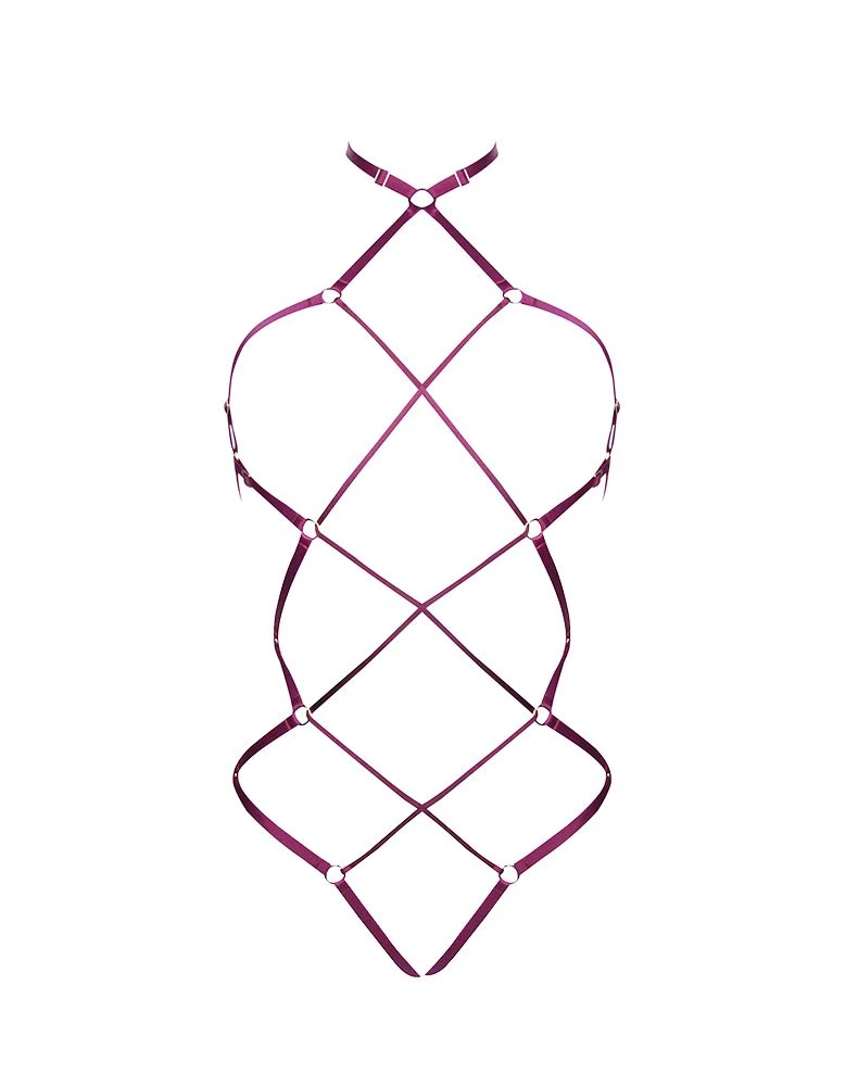 Ce harnais retrace les lignes du corps tout en laissant la peau nue : une couverture minimale pour un attrait maximal.