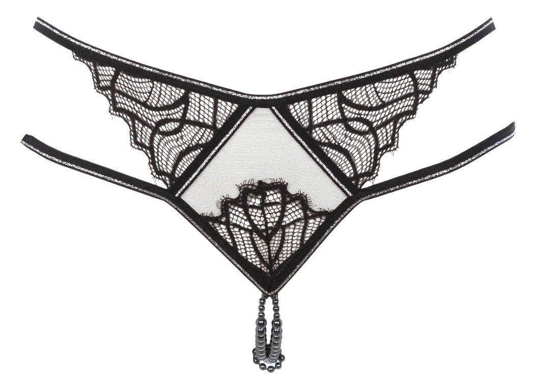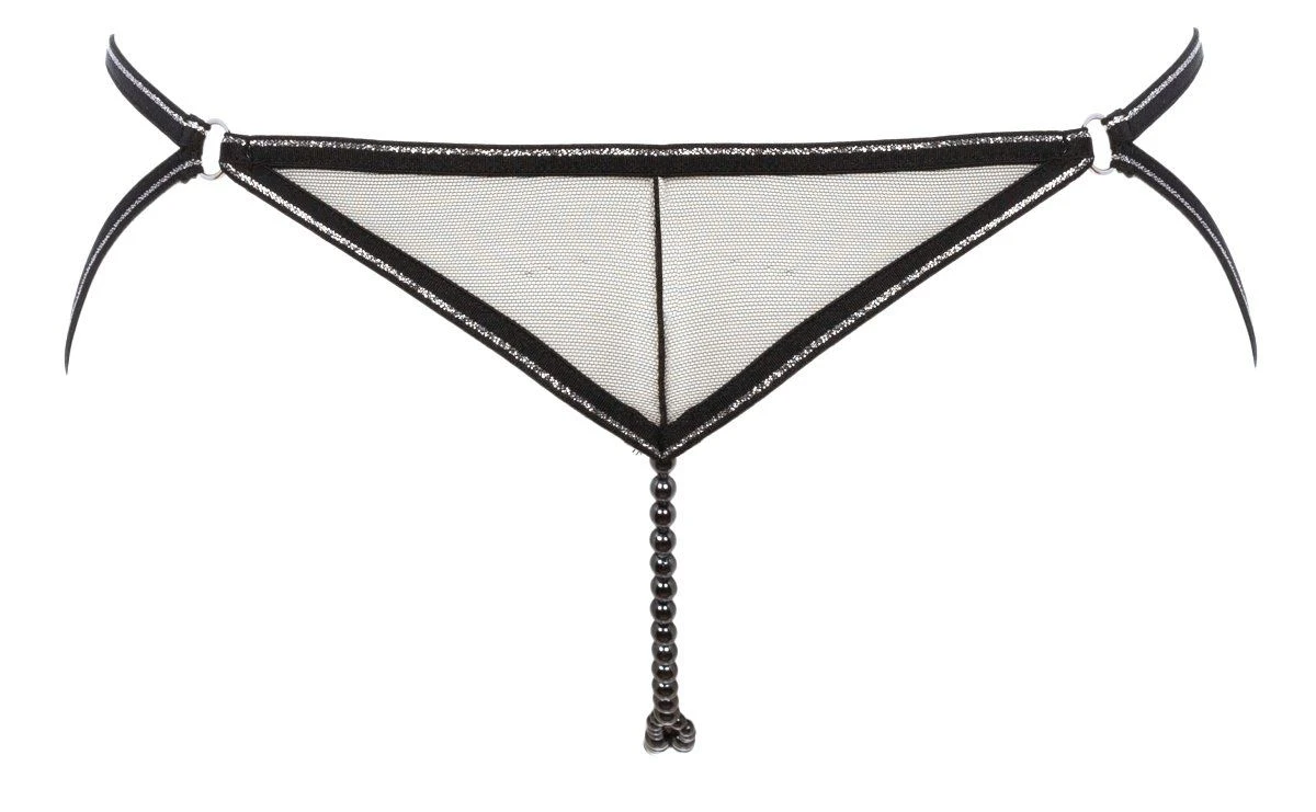 Ce string en dentelle italienne recyclée et tulle ultra transparent porte le sceau de Bracli : le double brin de perles à l’entrejambe.