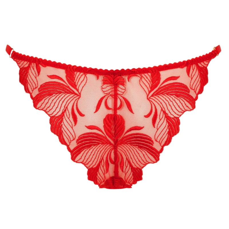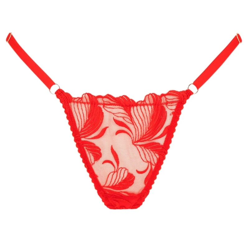 Le tanga Chérie fait chavirer les coeurs avec sa dentelle fine rouge passion et ses lanières élastiques.