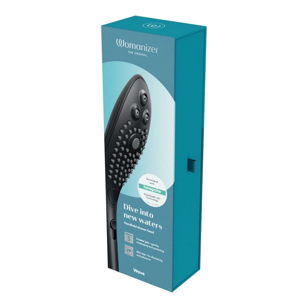 Pour ce nouveau sextoy innovant, la marque Womanizer, que l’on ne présente plus, s’est associée au spécialiste de la robinetterie Hansgrohe. Le Wave se présente comme un pommeau de douche, léger et agréable, il tombe parfaitement dans la paume de la main. Ses deux touches de contrôle se situent sur la poignée, elles permettent de voyager entre les 3 jets proposés et de moduler la pression de l’eau. D’une facilité déconcertante, tout est pensé pour décupler le plaisir.